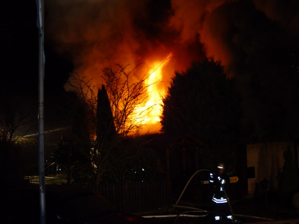 Leider konnte auch von hier der Brand nicht unter Kontrolle gebracht werden, so dass sich dieser über das komplette Haus ausbreitete. Die verwinkelt liegenden Brandnester machten ein schnelles Löschen unmöglich.